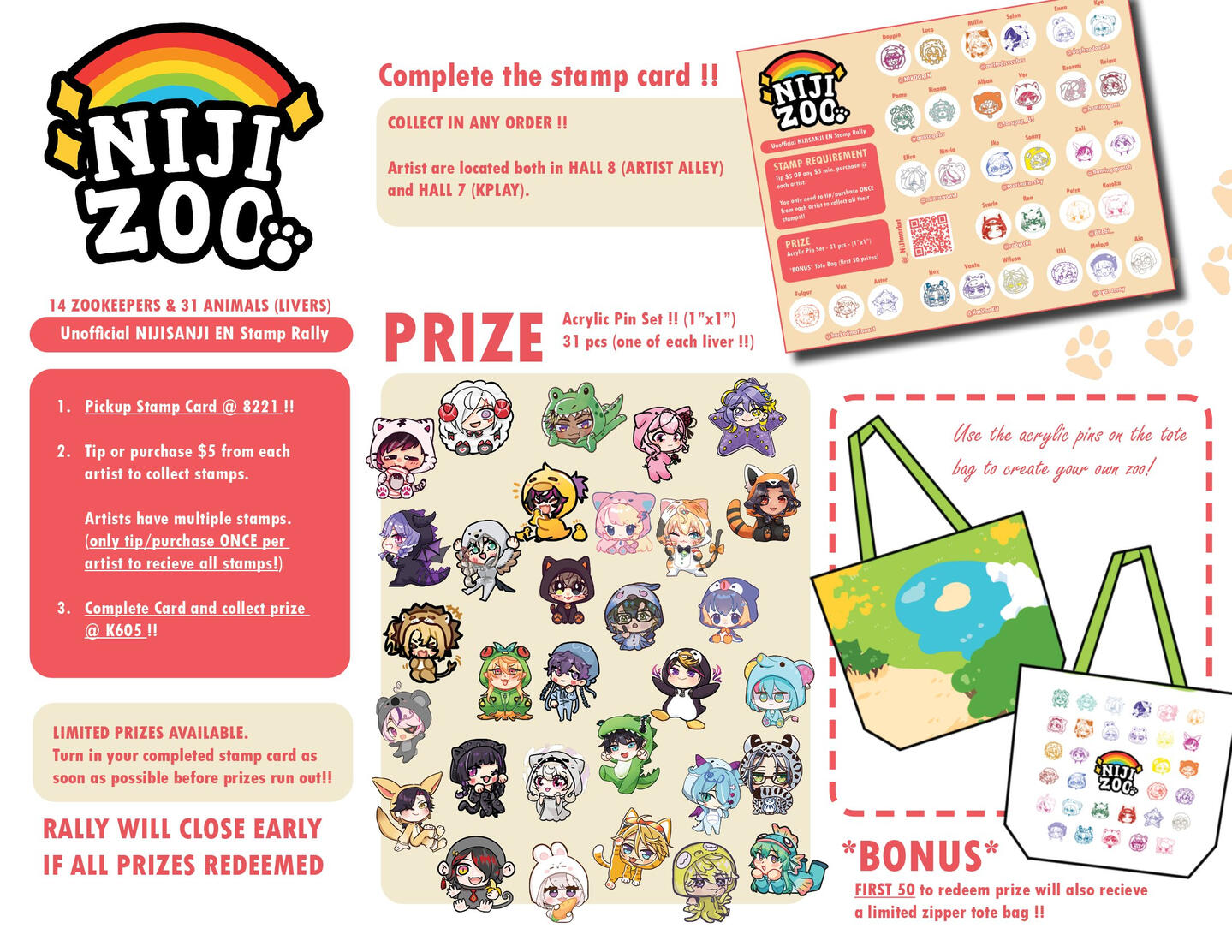 Prizes: Acrylic Pins & Tote Bag